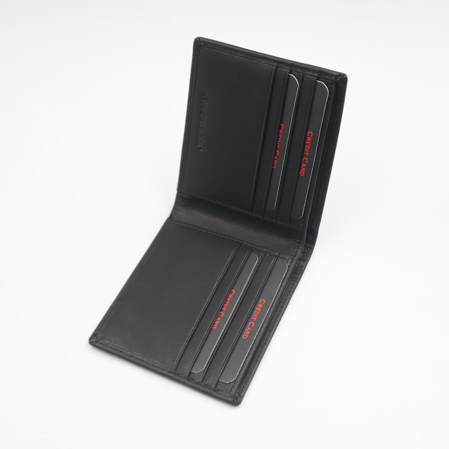 Cartera práctica y exclusiva en color negro, con la elegancia perfecta para el día a día. Compartimentos para tarjetas, credenciales y billetes, ideal para regalar o darle un toque sofisticado a tu estilo.