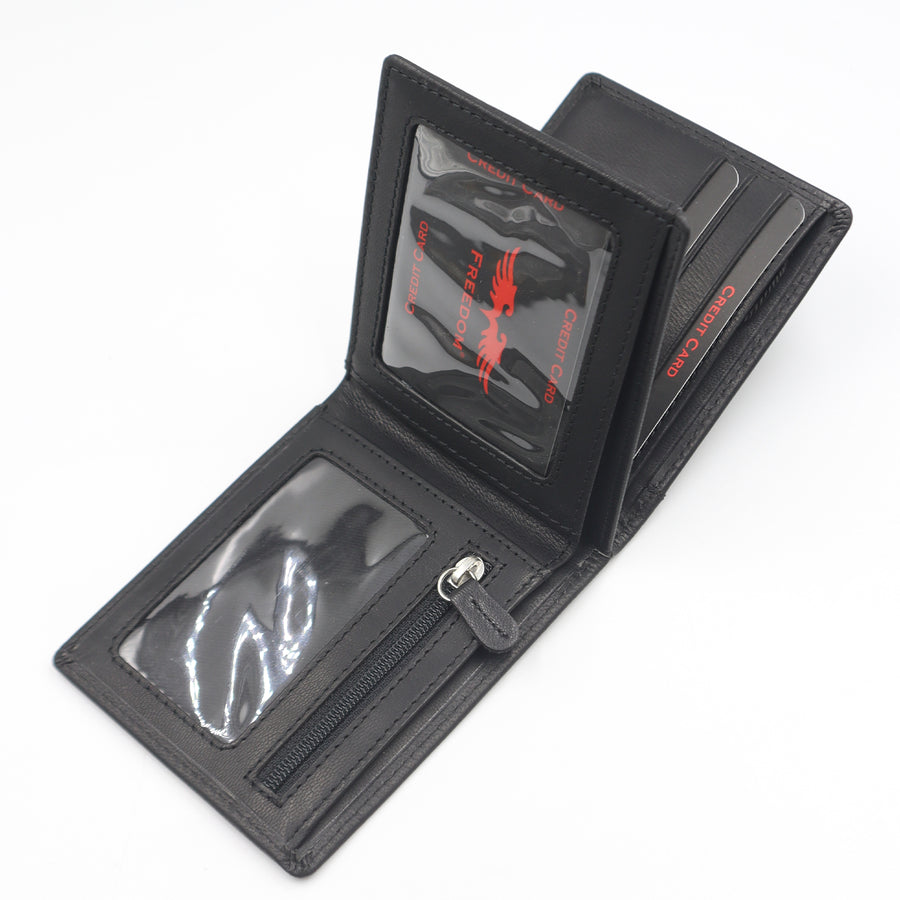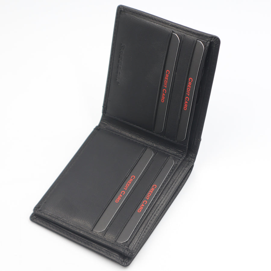 Cartera práctica y exclusiva en color negro, con la elegancia perfecta para el día a día. Compartimentos para tarjetas, credenciales y billetes, ideal para regalar o darle un toque sofisticado a tu estilo.