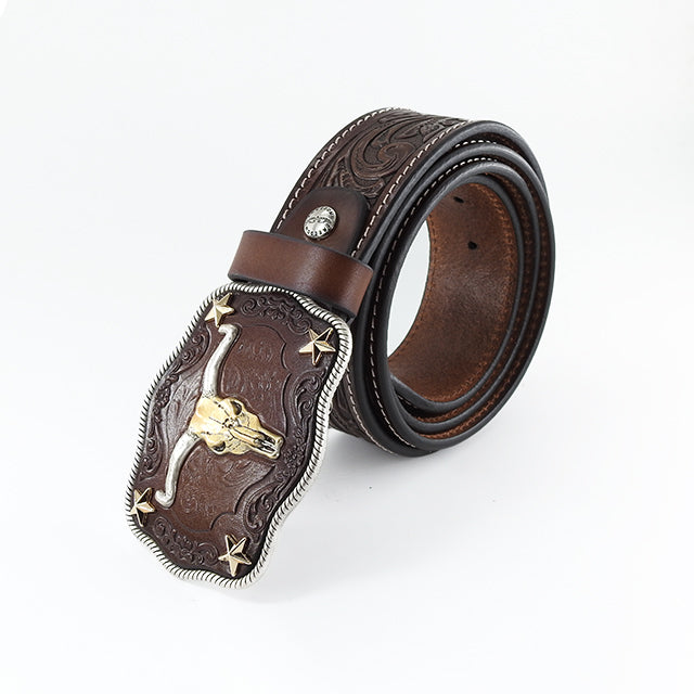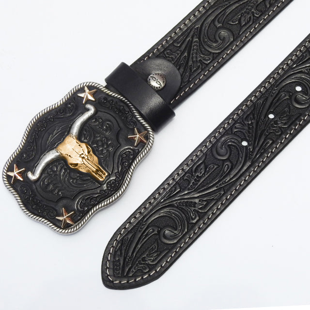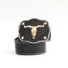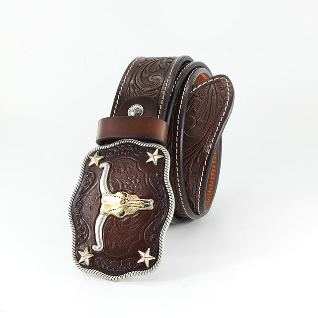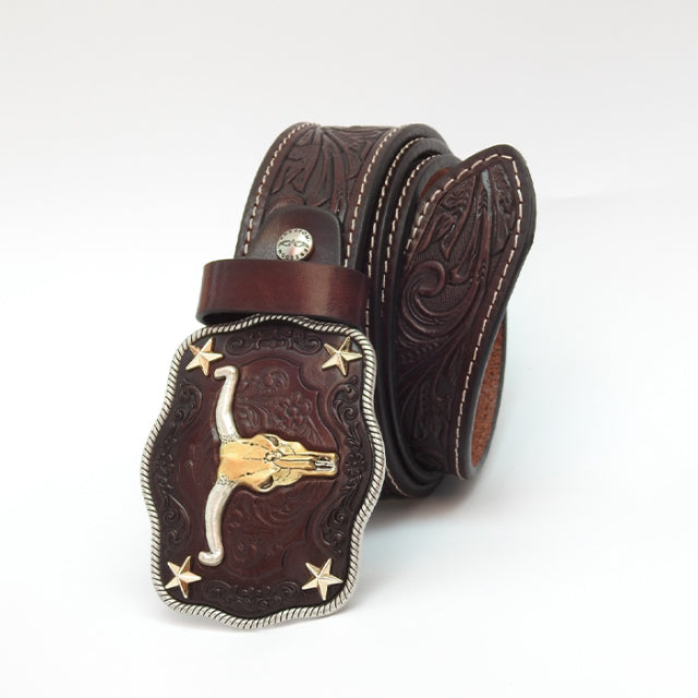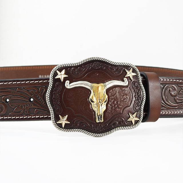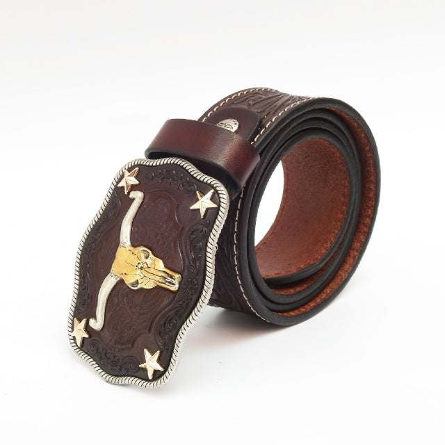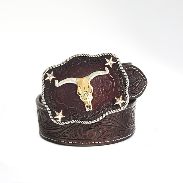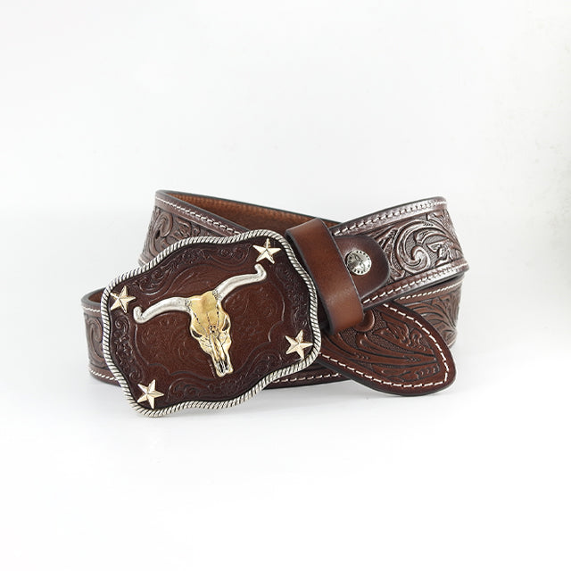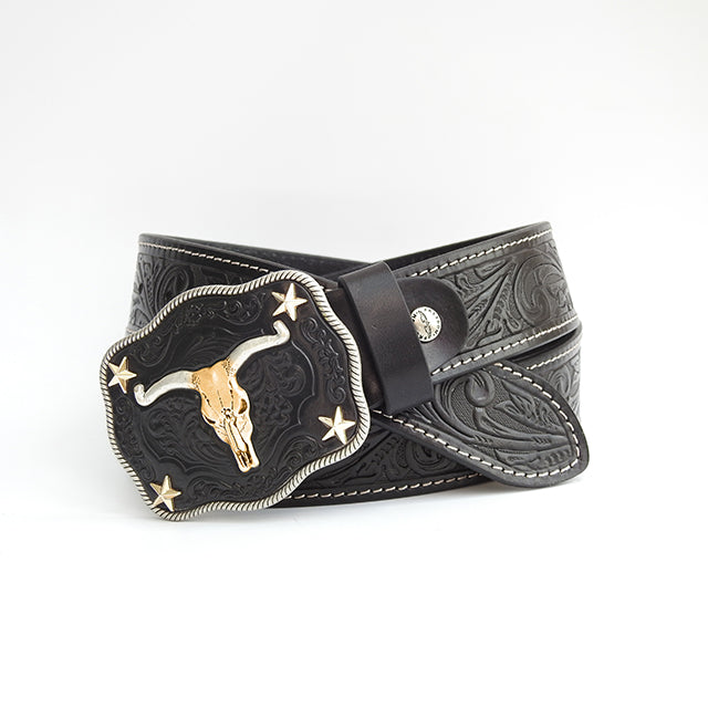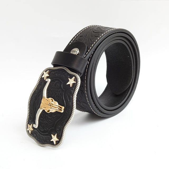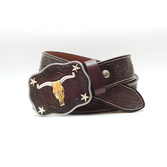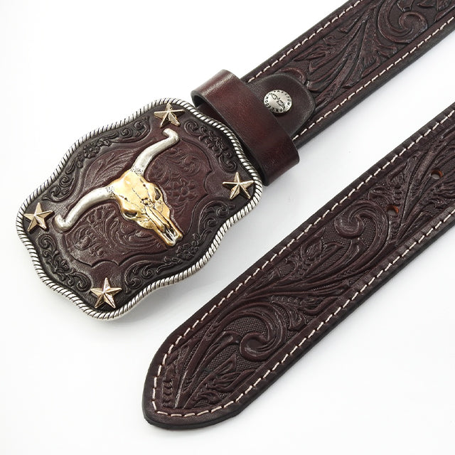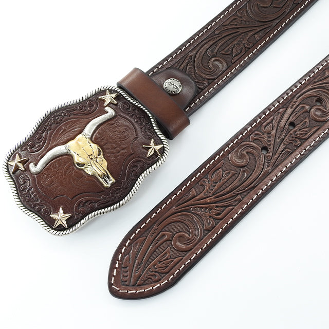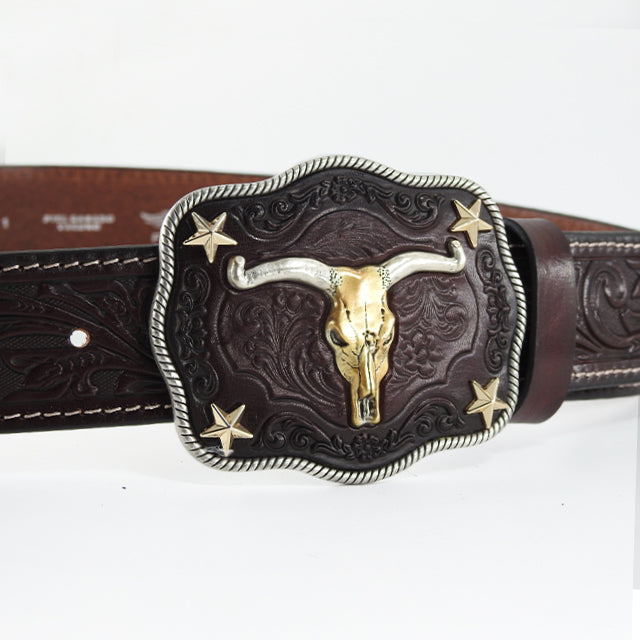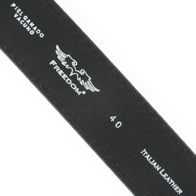 Fabricado con piel italiana de primera calidad y detallado con motivos Western, este cinturón refleja la pasión por la artesanía y el estilo único de Freedom.
