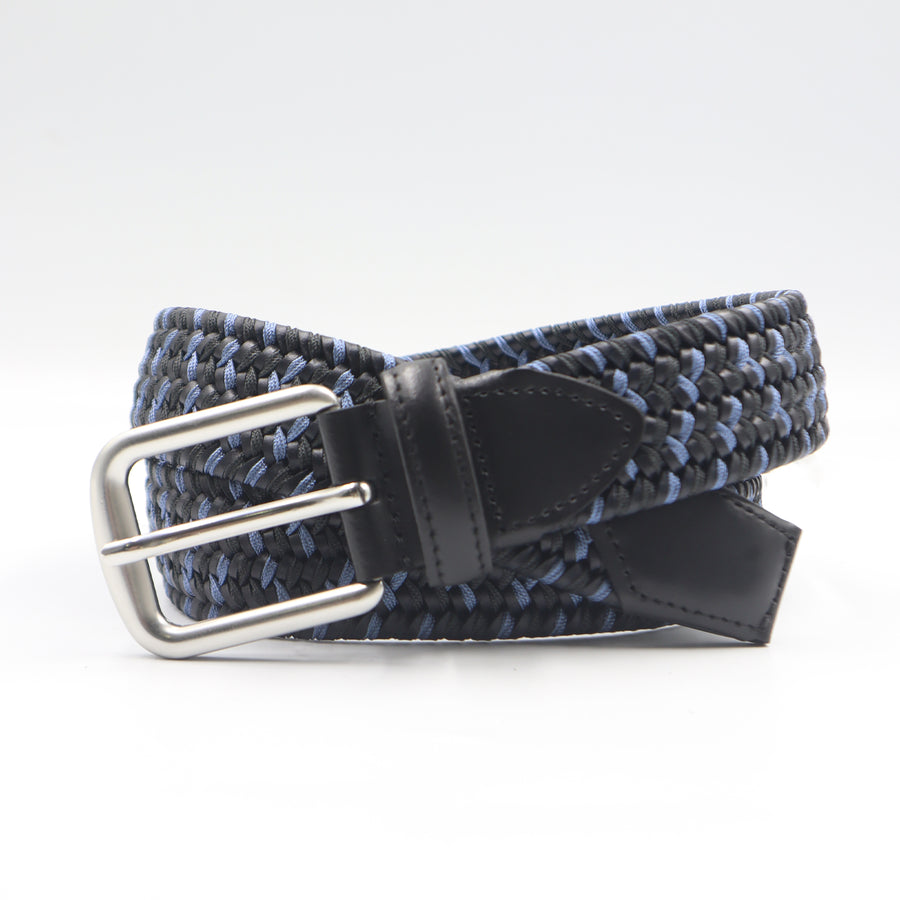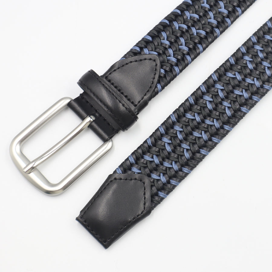 Cinturón elástico con ajuste sin perforaciones y hebilla en acabado plata mate, resistente e hipoalergénica.