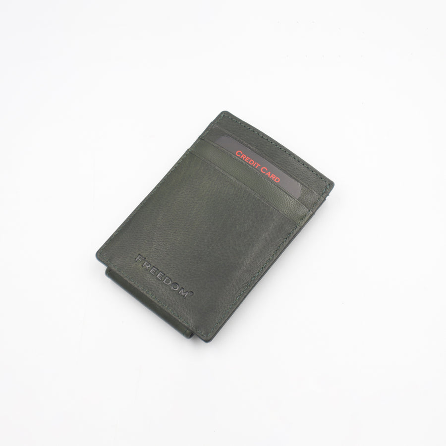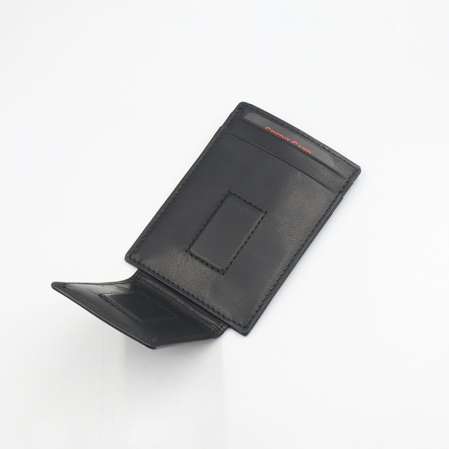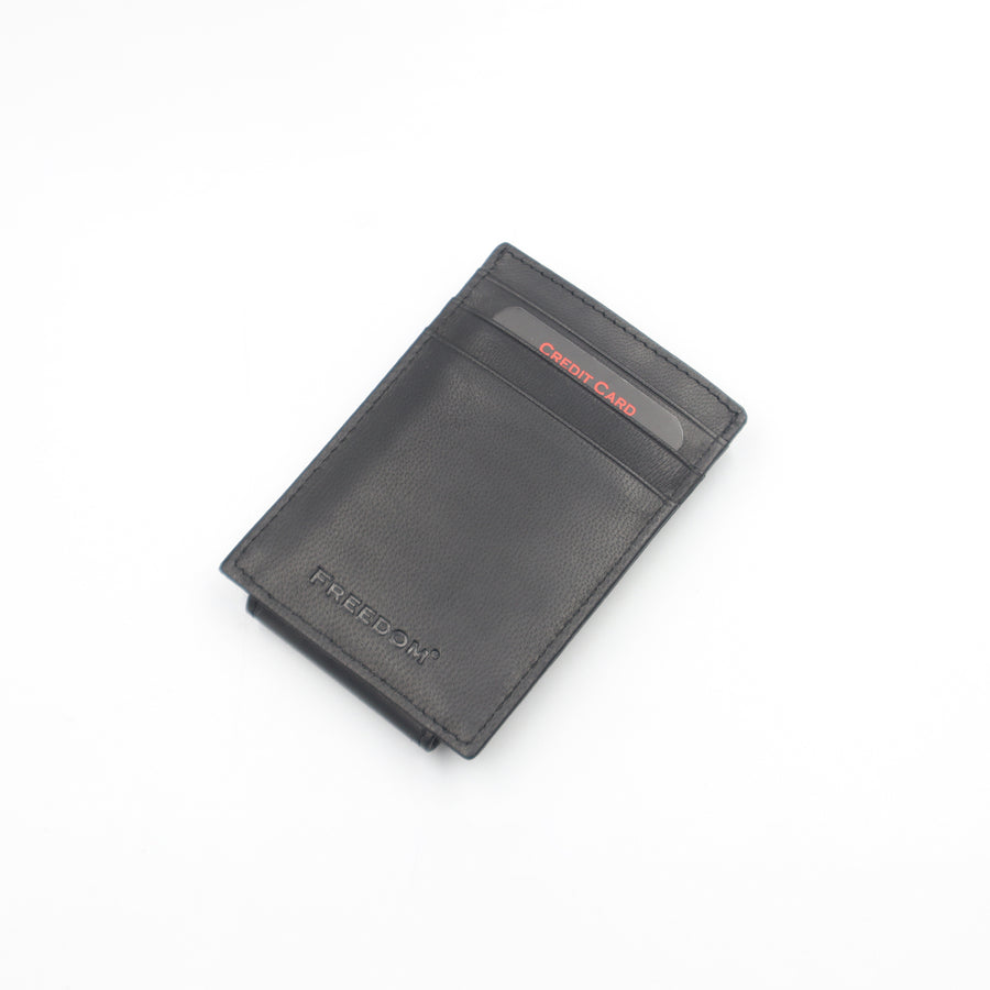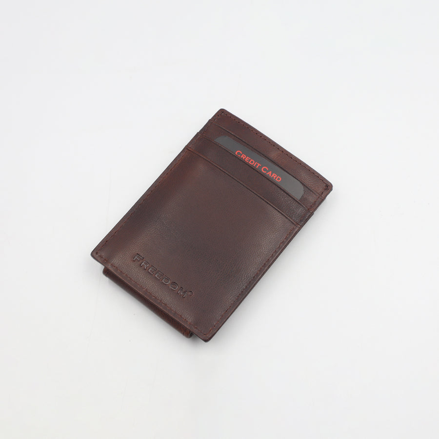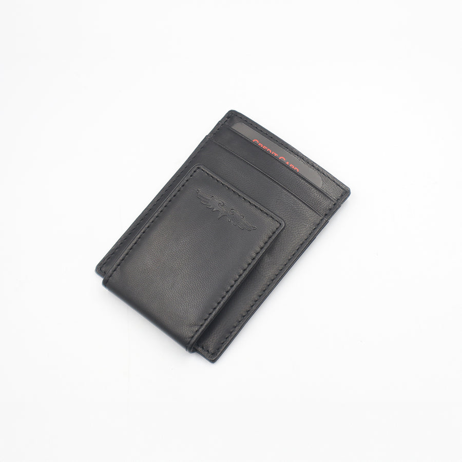 Tarjetero de piel genuina con multiples compartimentos y con clip para guardar billetes